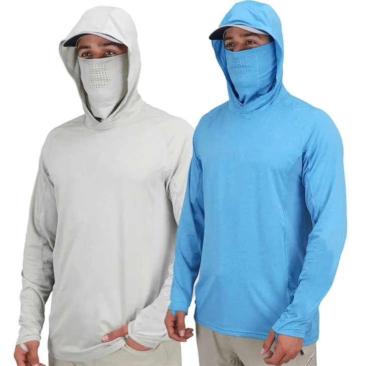 Mae cwfl a llewys hir hwdis pysgota yn darparu amddiffyniad ychwanegol rhag gwynt ac oerfel, gan helpu pysgotwyr i gadw'n gynnes ac yn gyfforddus yn ystod tywydd oerach neu wrth bysgota mewn mannau agored.