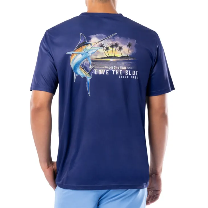 Mae crysau pysgota llewys byr yn aml yn ymgorffori ffabrigau UPF (Ffactor Diogelu Uwchfioled) i amddiffyn pysgotwyr rhag pelydrau UV niweidiol yr haul. Mae hyn yn helpu i atal llosg haul ac yn lleihau'r risg o niwed tymor hir i'r croen yn ystod amlygiad hirfaith ar y dŵr.